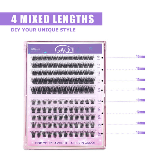 GAQQI Lash Clusters Kit 10-16MM with Lash Bond and Seal,Lash Remover and Lash Applicator (GQ03-KIT)